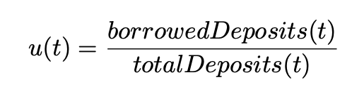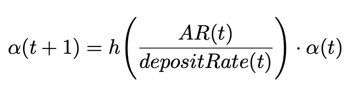 이런 안정화는 어떻게 가능할까? 공식적인 논의 대신 대출자가 예금주에게 추가적인 이자을 제공하지 않고 블럭 보상만을 통해 이자를 제공하는 단순한 상황을 살펴보면, 예금 금리 공식은 다음과 같다: