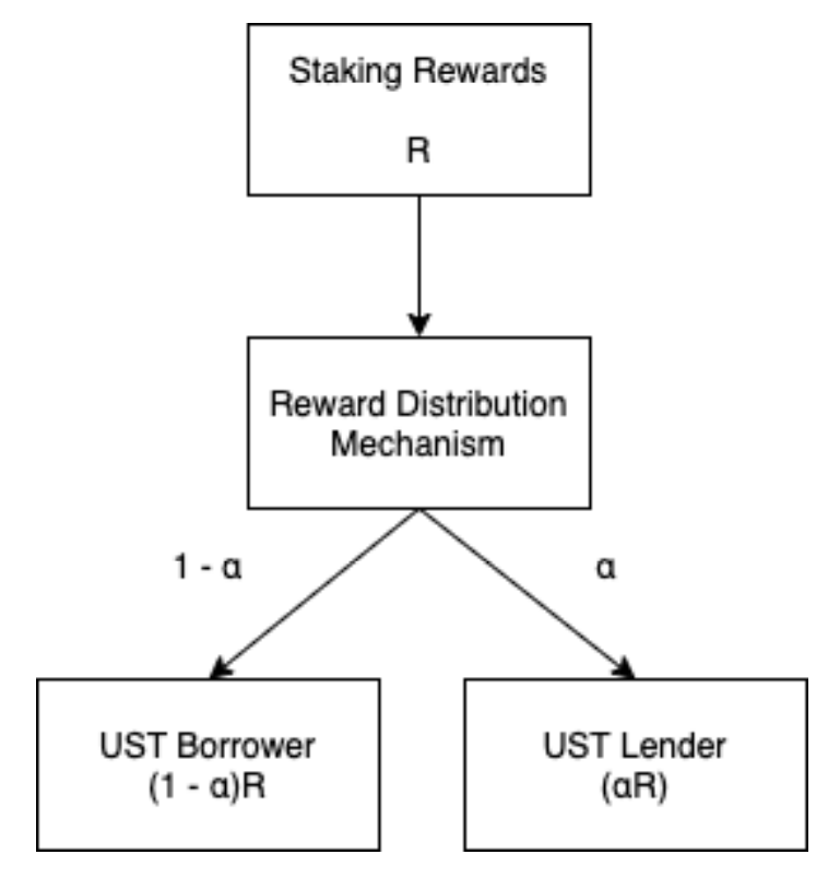 앵커 금리는 스테이블코인을 빌리기 위한 담보로 사용되는 모든 bAssets 의 회전 수익률 평균에 각 자산의 (테라 표시) 담보 가치 합계로 가중한 값이다. 담보 가치는 대출자부터 예금자에게 이전할 수 있는 블럭 보상의 크기를 결정하므로 가중치로 선정되는 것은 자연스럽다. 따라서 예금자에게 기여 가능성에 따라 이율에 가중치를 부여한다. 예를 들어, 3mm UST 가치의 bLuna 와 1mm 가치의 bAtom 이 UST 머니 마켓에서 담보로 있을 때 이율이 각각 15%와 10%라면, 앵커 금리는 13.75%가 된다.