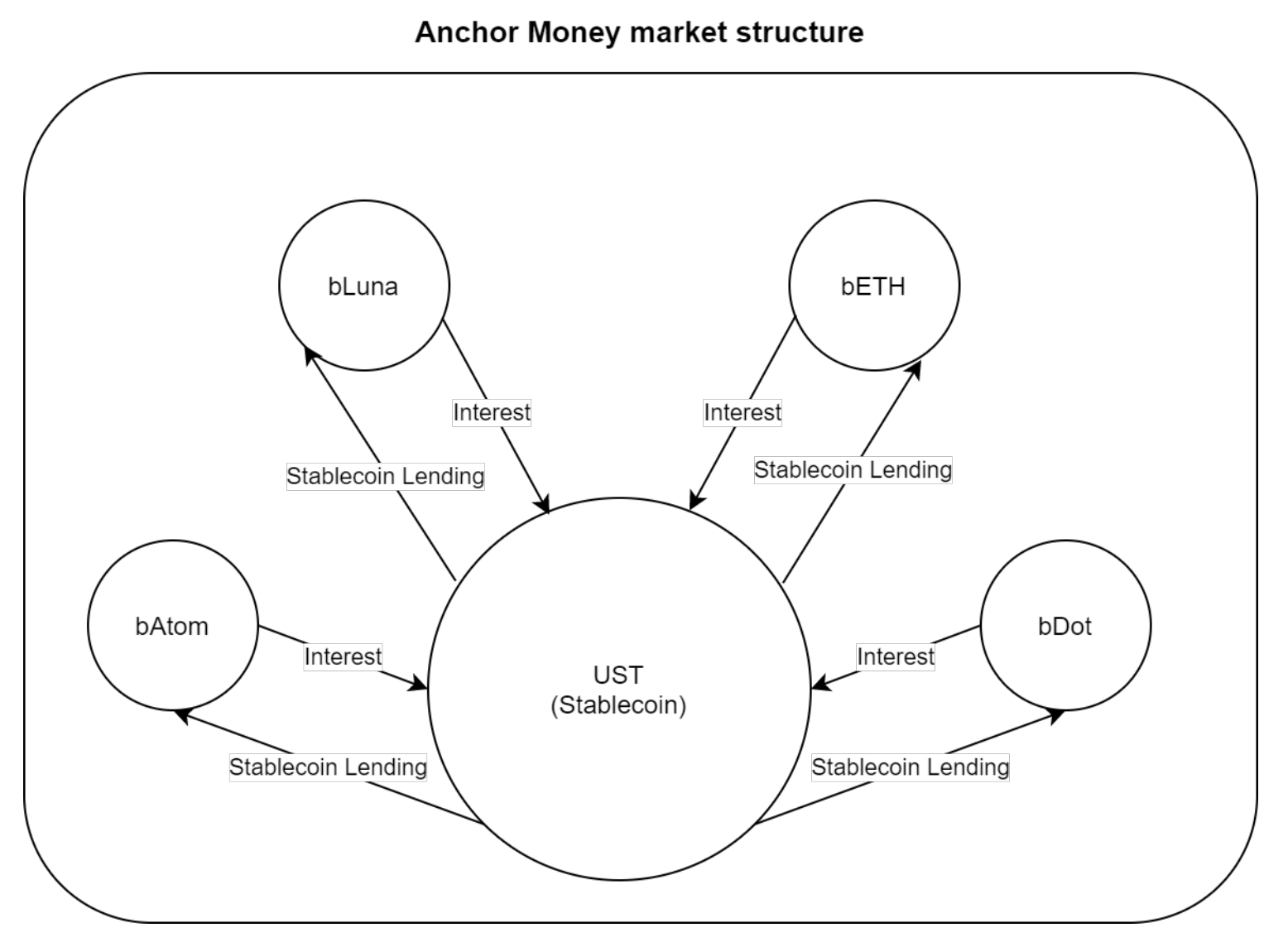 앵커 예금 프로토콜의 핵심 빌딩 블럭은 테라 머니 마켓으로, 이는 TerraUSD와 같은 테라 스테이블 코인의 예금과 대출을 가능하게 하는 테라 블럭체인 상의 웹어셈블리(WASM) 스마트 컨트랙트이다. 머니 마켓은 대출자에게서 이자를 받는 테라 예금 풀로 정의할 수 있다. 대출자는 풀에서 테라를 빌리기 위한 담보로서 디지털 자산을 예치한다. 금리는 풀의 사용 비율(대출된 테라의 풀 내 비중)에 따라 결정되는 수요과 공급의 함수를 이용한 알고리즘이 결정한다.