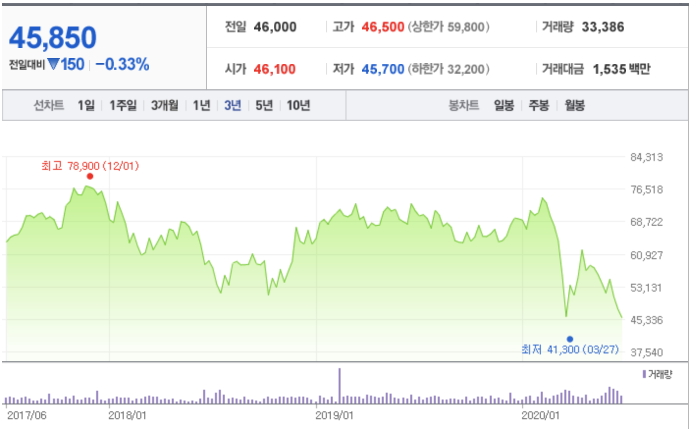 글을 쓰고 매수한지 3개월이 지난 시점입니다. 한때 57,500원까지 올라갔지만 현재 52,000 원대로 빠진 상태입니다.