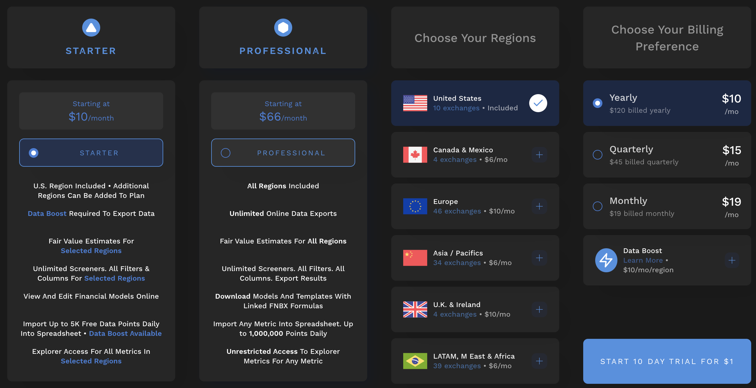 - 미국 주식에 대해 위의 기능을 이용하려면 월 $19 혹은 연 $120 짜리 Starter 를 구매하면 됩니다.