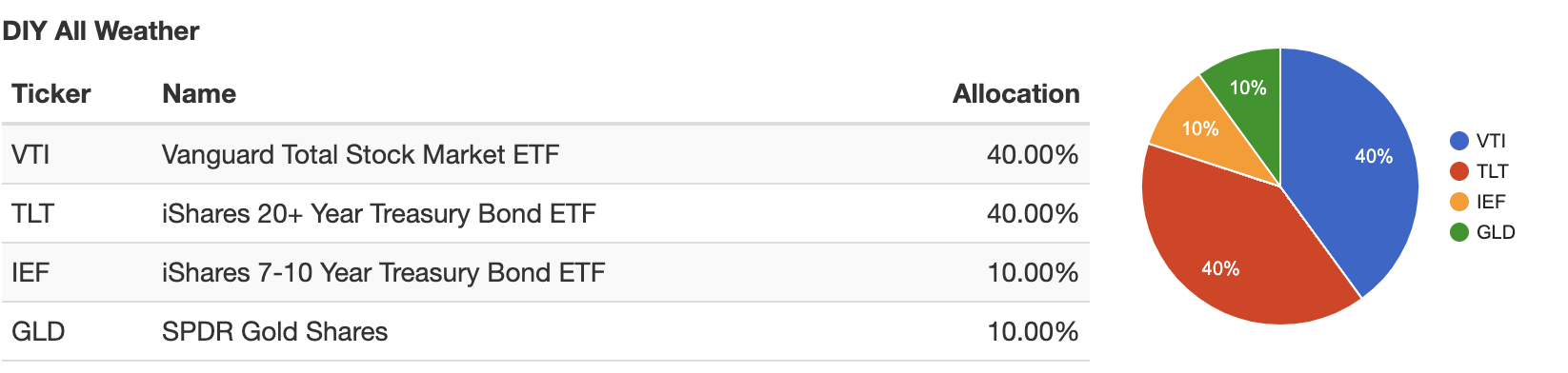quant42.tistory.com/6의 실전 운용 계좌 현황을 적어봅니다. 글로벌 올웨더 v1 제가 만든 올웨더 모델은 다음과 같이 네 가지 ETF 로 구성된 간단한 포트폴리오 입니다 : 주식 40, 장기채 40, 중기채 10, 금 10 이렇게 단순한 비중으로 가져갑니다. S&P 500 지수를 추종하는 SPY 를 벤 quant42.tistory.com 모델 포트폴리오와 다른 점은 금 ETF 를 GLD 대신 수수료가 저렴한 SGOL 로 운용한다는 것 외에는 없습니다. 포트폴리오는 4월 말부터 운용하기 시작했는데, 그 동안 주식이 많이 올라서 VTI 의 비중이 45% 로 높아졌습니다. 주식 수익률만 따지면 12% 이상, 모델 기준으로 1% 이상 수익이 발생했는데, 실투에서는 분할매수, 환차손, 매매 실수 ..