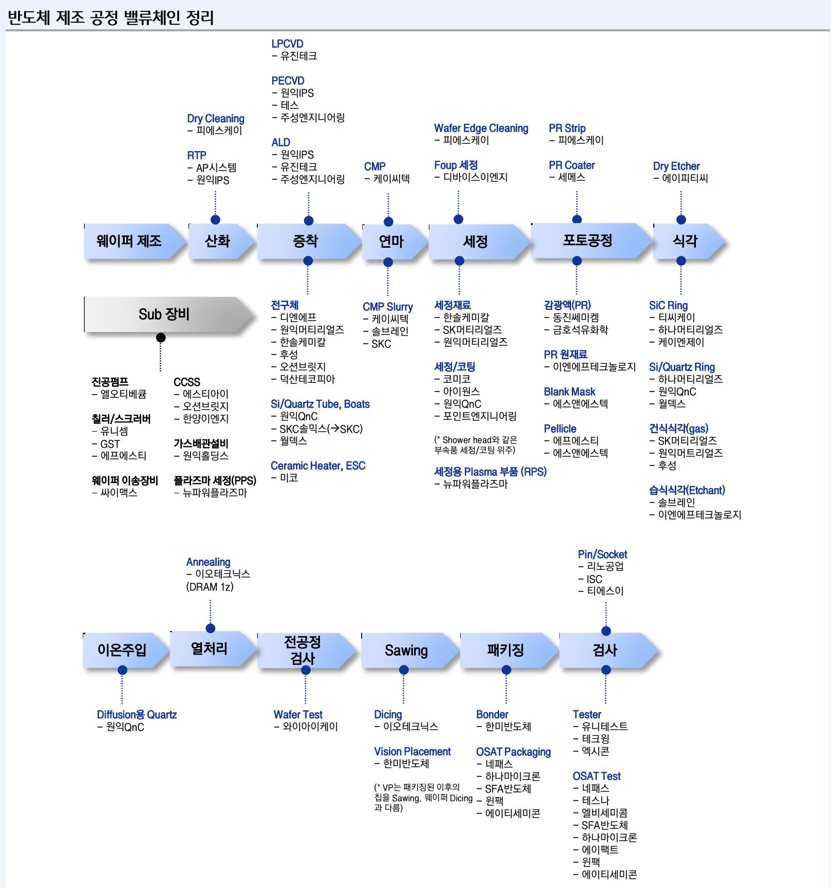 반도체에 대해 미뤄뒀던 공부를 하고 있는데요: quant42.tistory.com/42 반도체 공정 이해 https://www.samsungsemiconstory.com/95 반도체 8대 공정 1탄. 반도체 집적회로의 핵심재료, 웨이퍼란 무엇일까요? 반도체 집적회로(semiconductor integrated circuit)는 손톱만큼 아주 작고 얇은 실리콘 칩처럼.. quant42.tistory.com 얼마 되지는 않지만 유니셈이라는 종목을 갖고 있습니다, 민망하지만 반도체 관련주라는 정도 외에는 단순히 "싸서" 매입했는데요. 추정 이익 대비 멀티플이 7 수준이었기 때문에 매수했었습니다. 현재 매수가 대비 약간 빠진 상태인데, 이번에 공부를 해보니 이해가 좀 되는군요. 유니셈은 공정에 직접 관련된 장비..